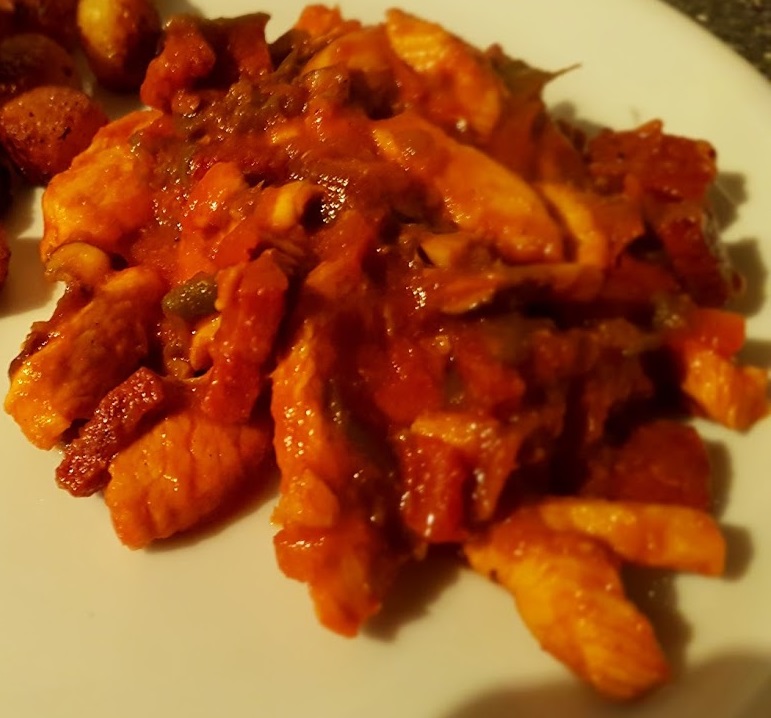 Bak nu de kip gaar in het bakvet van de chorizo.